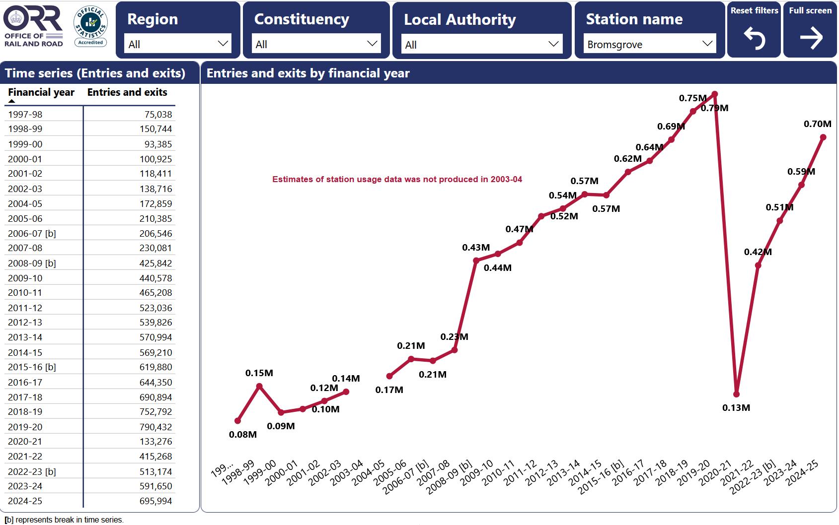 COVID-19 had a big effect and since then, the Cross City Line has reduced to just 2 trains an hour to both Bromsgrove and Redditch. This will have impacted the footfall figures.